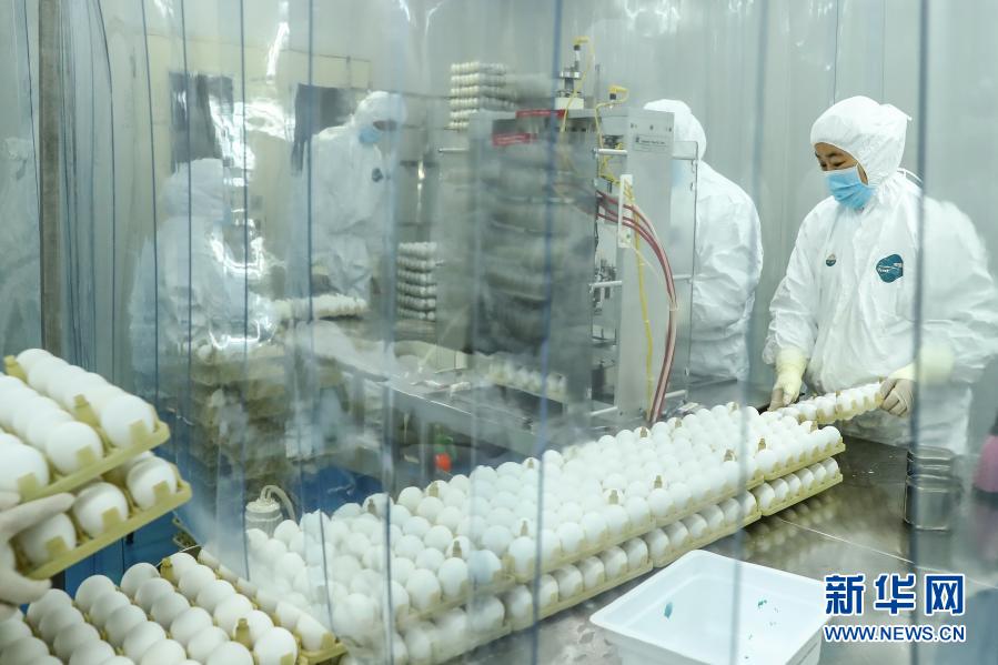 10月27日,在北京科兴生物制品有限公司流感疫苗生产车间,工作人员将流感病毒毒种接种到鸡胚中。新华社记者 张玉薇 摄