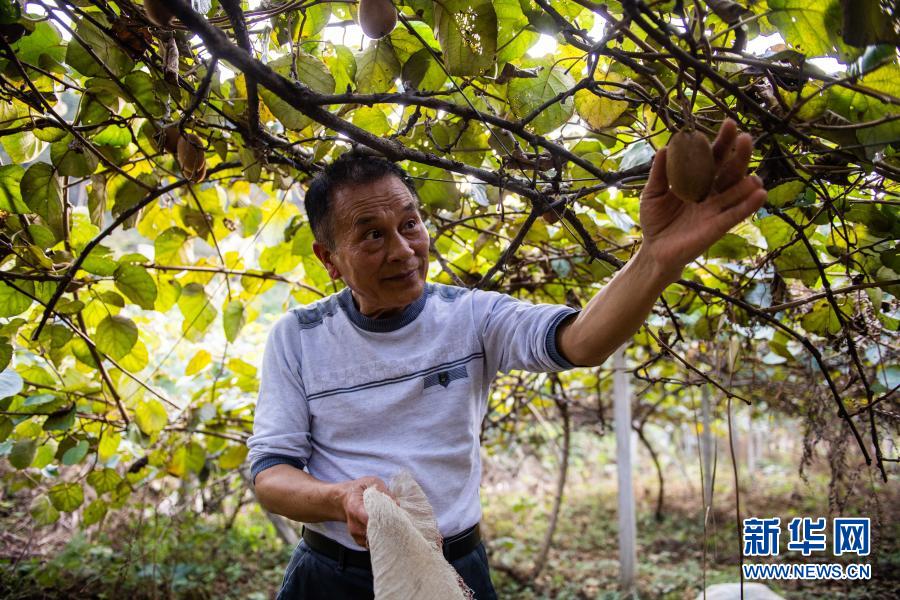 11月18日,在湖南省常德市桃源县杨溪桥镇煌山村,村民在采摘猕猴桃。新华社记者 陈思汗 摄