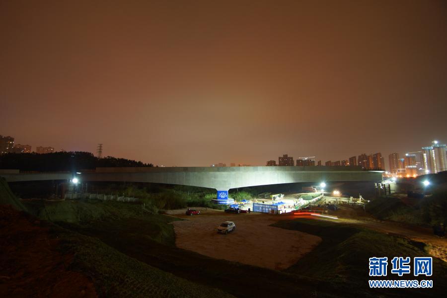 11月27日凌晨,经过近1个小时的紧张施工,贵南高铁柳南南广立交双线大桥2号墩转体梁成功转动到达预定位置,与旁边的既有铁路线实现上跨交叉。