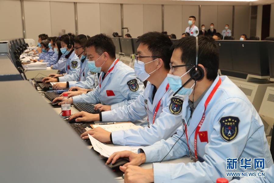 11月30日,航天科技人员在北京航天飞行控制中心专注工作。 新华社发(北京航天飞行控制中心供图)