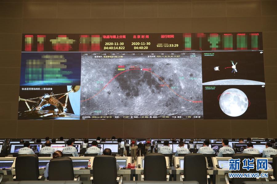 嫦娥五号探测器组合体成功分离 将择机实施月面软着陆
