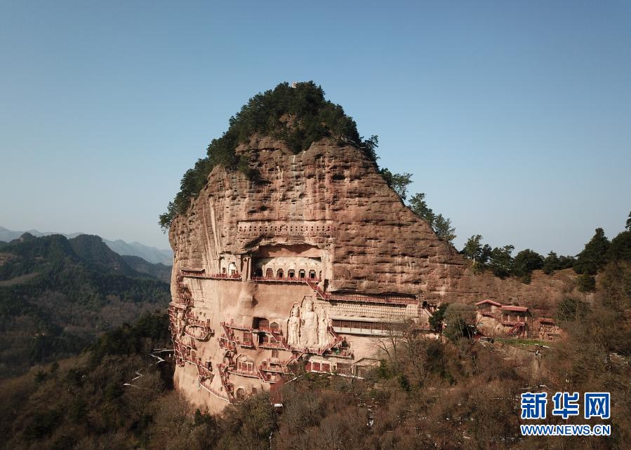 这是11月29日拍摄的麦积山石窟(无人机照片)。