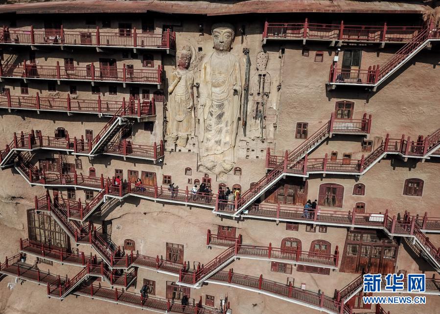 这是11月29日拍摄的麦积山石窟一景(无人机照片)。