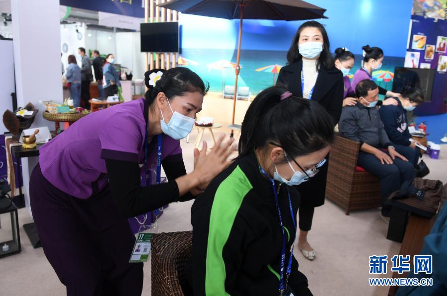 11月30日,在南宁国际会展中心,观众体验泰式按摩。