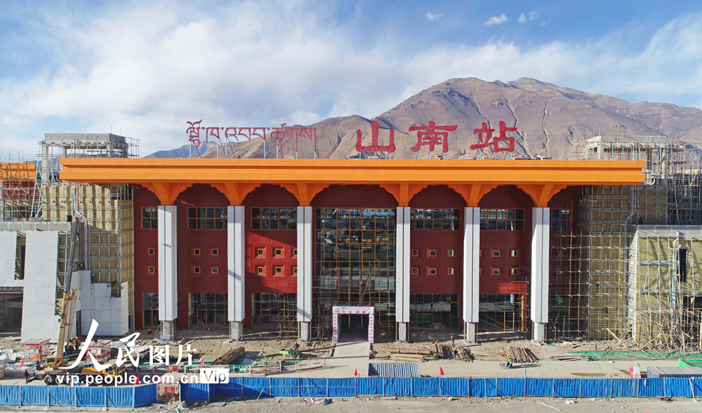 据中铁建设集团项目负责人介绍,西藏山南火车站是川藏铁路拉萨至林芝段第三个新建的客货两用车站。通车后将直接改变山南市区周边近8万人的出行方式,并带动沿线农牧产品及旅游业发展,同时结束了山南市不通火车的历史。拉林(拉萨至林芝)铁路全长约435.48公里,设计时速160公里,是西藏首条电气化铁路。宋卫星 摄 (人民图片网)