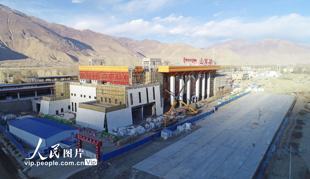 据中铁建设集团项目负责人介绍,西藏山南火车站是川藏铁路拉萨至林芝段第三个新建的客货两用车站。通车后将直接改变山南市区周边近8万人的出行方式,并带动沿线农牧产品及旅游业发展,同时结束了山南市不通火车的历史。拉林(拉萨至林芝)铁路全长约435.48公里,设计时速160公里,是西藏首条电气化铁路。宋卫星 摄 (人民图片网)