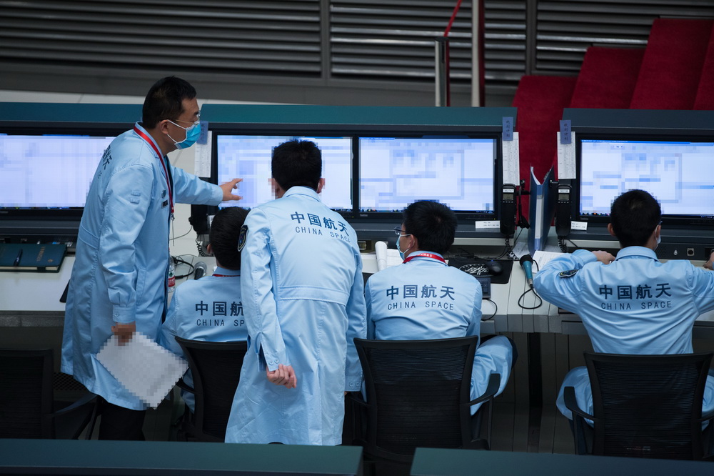 12月1日,在北京航天飞行控制中心,航天科技人员在监测嫦娥五号探测器落月过程。新华社发(国家航天局供图)