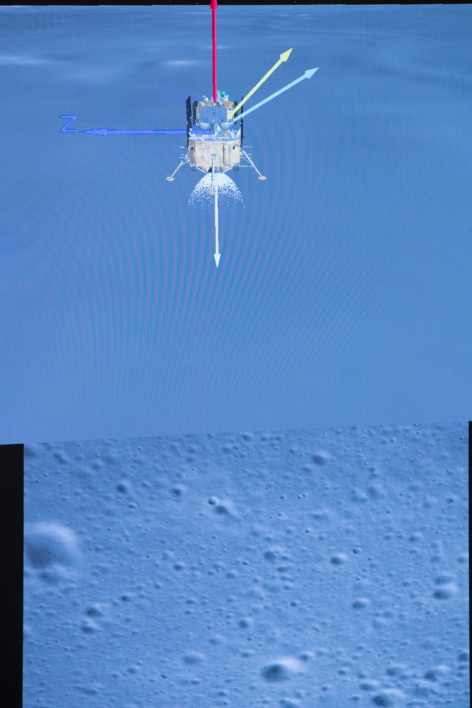 12月1日,在北京航天飞行控制中心拍摄的嫦娥五号探测器落月过程。新华社记者 金立旺 摄