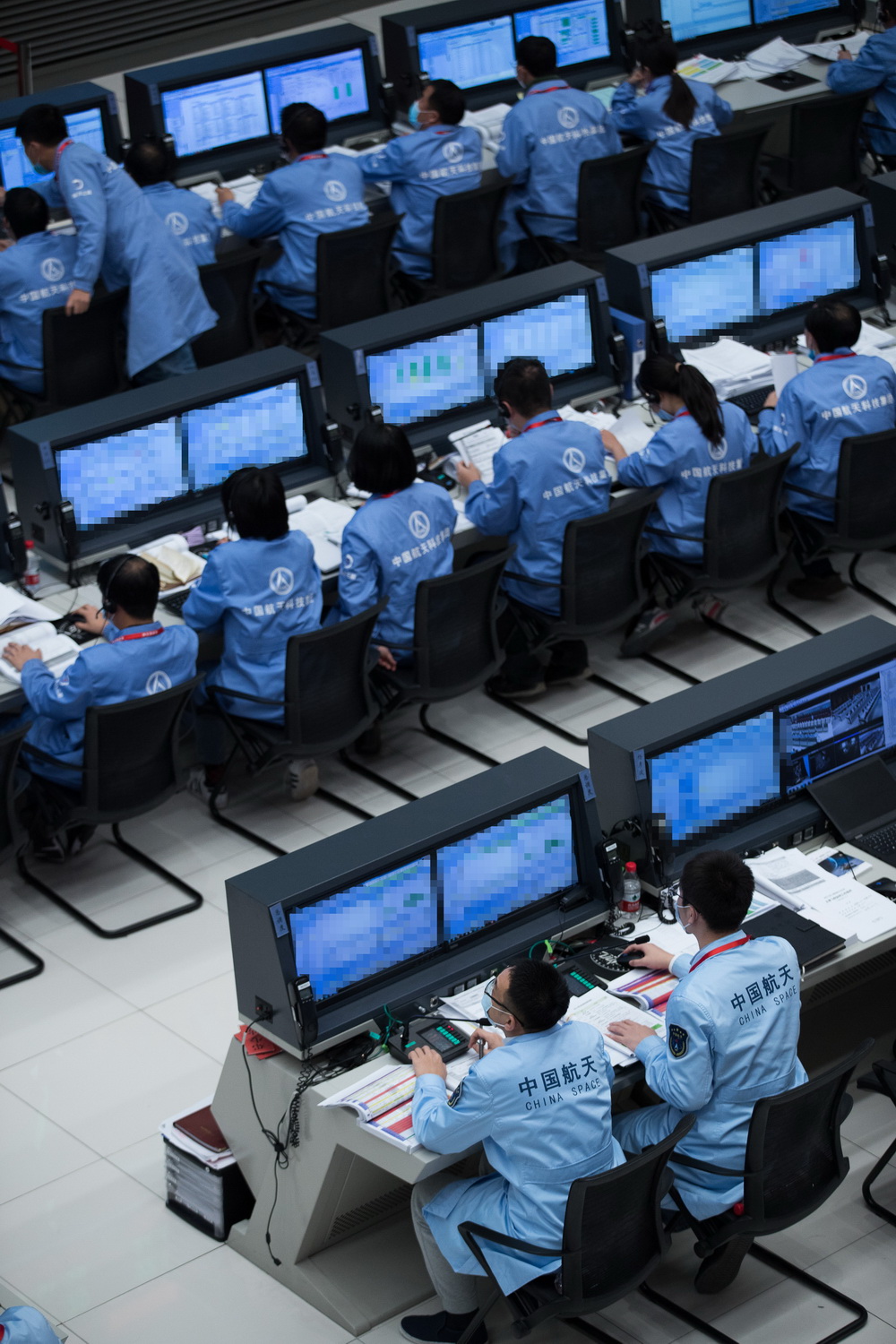 12月1日,在北京航天飞行控制中心,航天科技人员在监测嫦娥五号探测器落月过程。新华社记者 金立旺 摄