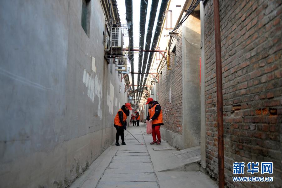 12月5日,河北省邢台市助学公益协会志愿者在邢台市信都区观星社区打扫卫生。