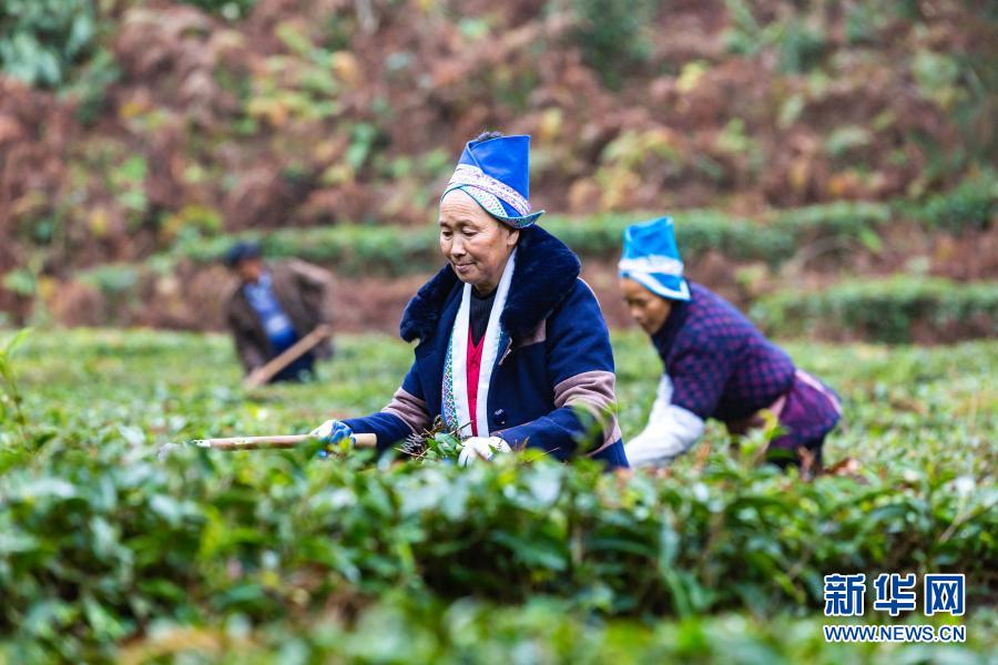 12月6日,茶农在贵州省安顺市西秀区旧州镇茶岭村管护茶园。