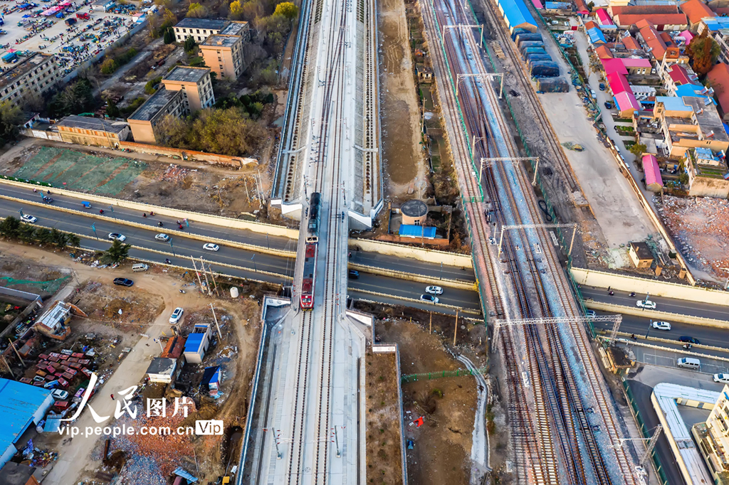 12月8日,一辆接触网热滑试验机车在连徐高铁东海县城段缓缓通过。据介绍,本次测试已进入尾声,12月10日将进入联调联试阶段,进一步为明年2月通车提供了保证。邵光明 摄 (人民图片网)