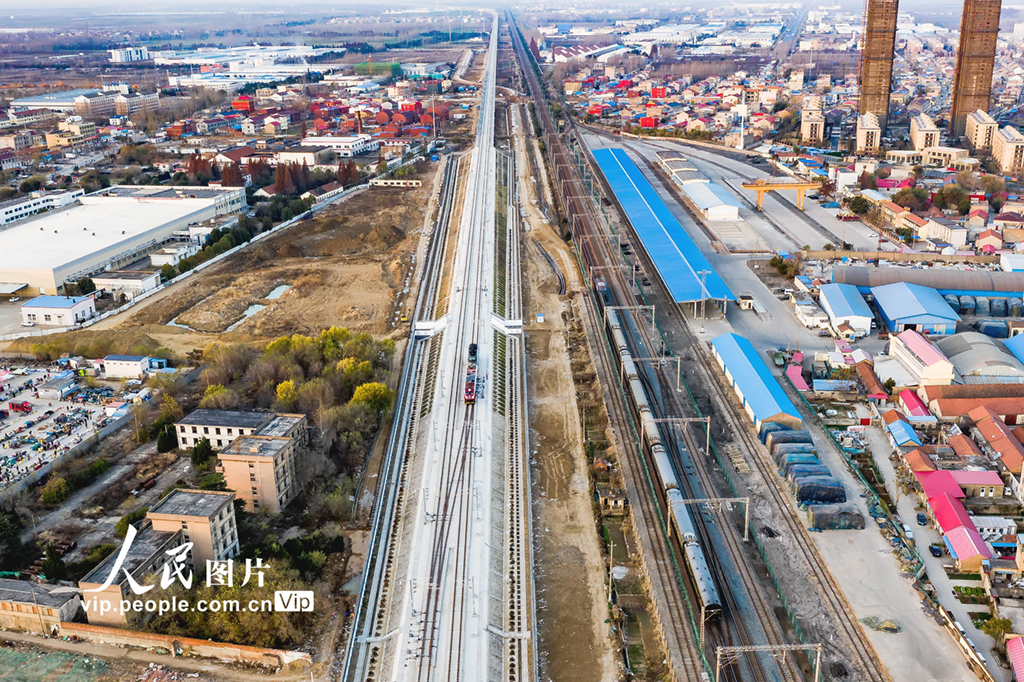 12月8日,一辆接触网热滑试验机车在连徐高铁东海县城段缓缓通过。据介绍,本次测试已进入尾声,12月10日将进入联调联试阶段,进一步为明年2月通车提供了保证。邵光明 摄 (人民图片网)