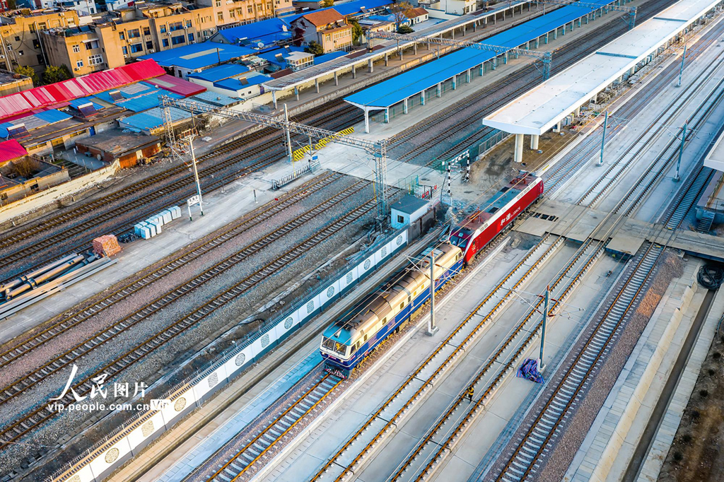 12月8日,一辆接触网热滑试验机车在连徐高铁东海县城段缓缓通过。据介绍,本次测试已进入尾声,12月10日将进入联调联试阶段,进一步为明年2月通车提供了保证。邵光明 摄 (人民图片网)