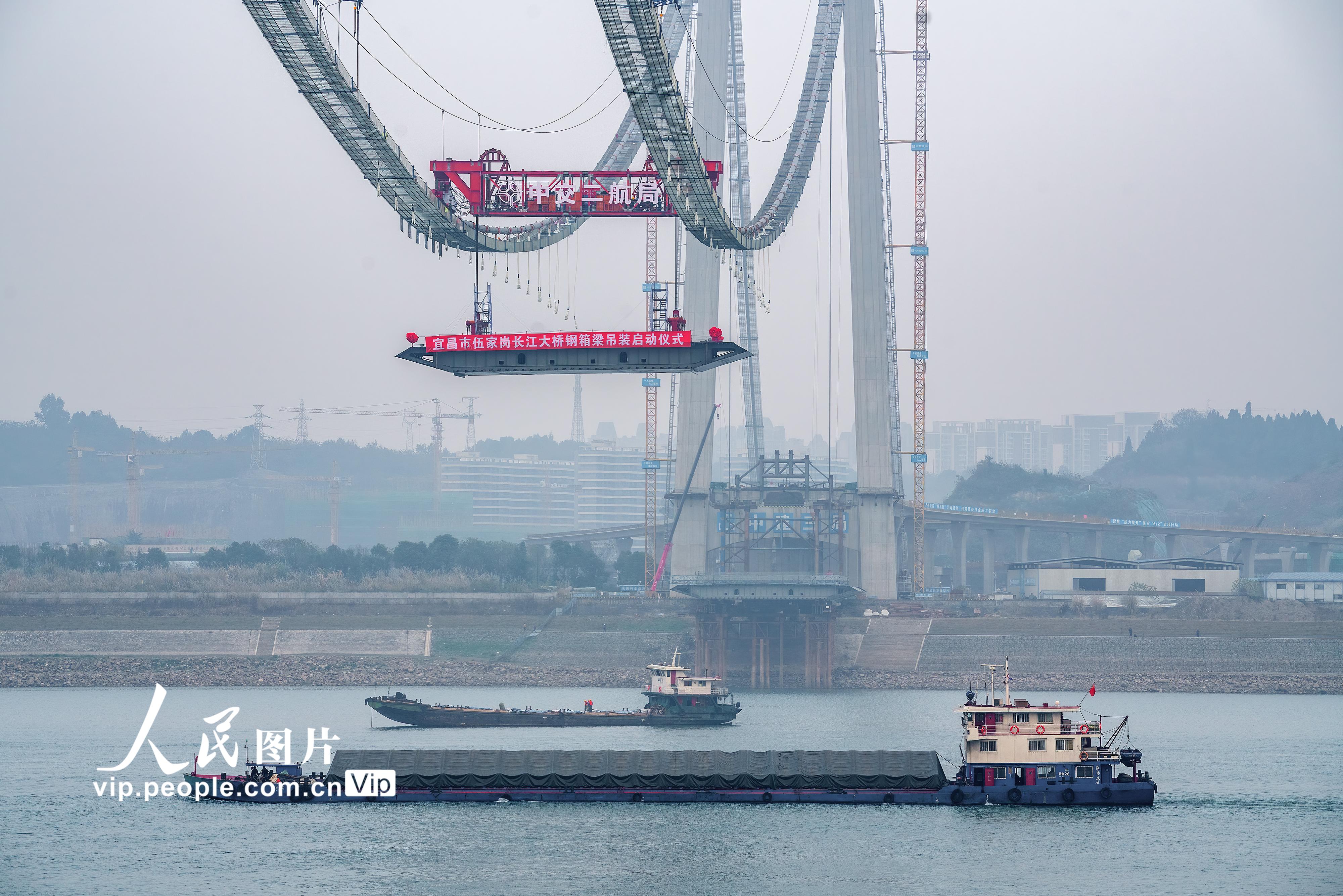2020年12月8日,湖北宜昌市伍家岗长江大桥顺利吊装首榀钢箱梁,标志着该桥施工进入上部结构钢箱梁吊装阶段。