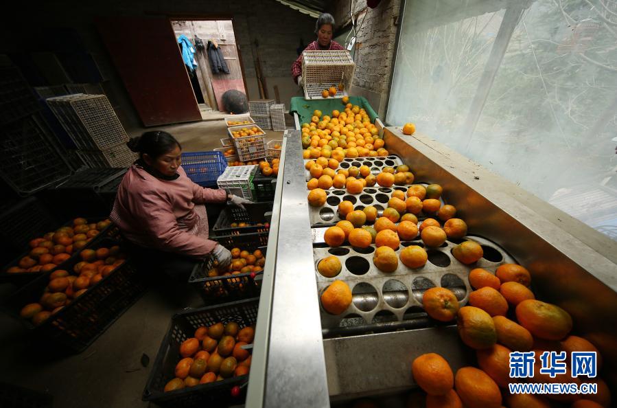 12月9日,村民在贵州省丹寨县排调镇方胜村椪柑种植基地分拣椪柑。