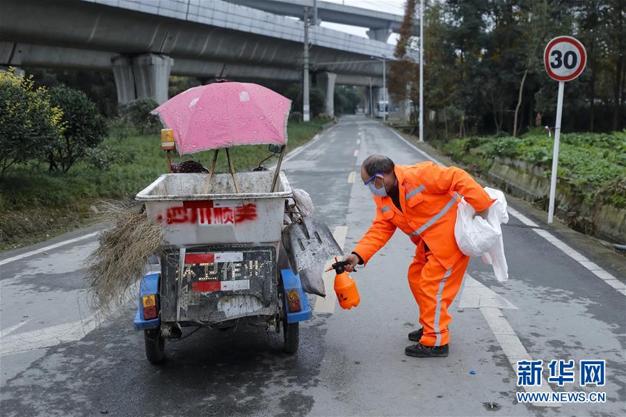 12月9日,在太平村一路口,工人给垃圾车消毒。 在成都疫情防控最前线——郫都区郫筒街道太平村,各项疫情防控工作正有序开展。太平村各路口均有工作人员和志愿者站岗执勤,严控人员进出。 目前,成都市已将郫都区郫筒街道太平村、成华区崔家店华都云景台小区、郫都区唐昌镇永安村8组升级为中风险区,实施全面现场管控和消杀。同时,还对郫都区人民医院、太平村11组、沙西农贸批发市场、郫都区岷阳学校、中冶中央公园小区、相关酒吧、餐饮店等区域实施现场管控和消杀。 新华社记者 沈伯韩 摄