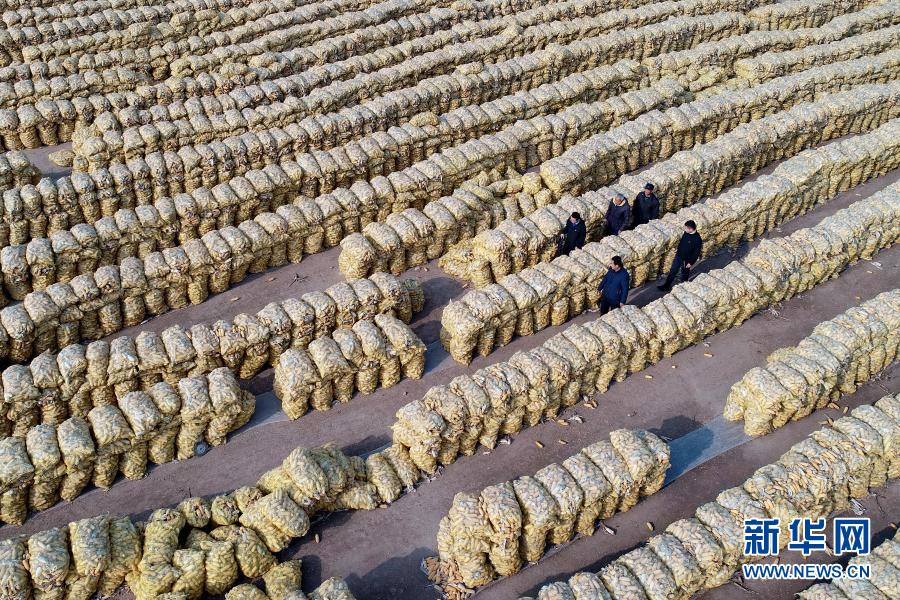 12月10日,河北省巨鹿县纪委监委工作人员在巨鹿县西郭城镇柳洼村向村民了解扶贫政策落实情况(无人机照片)。