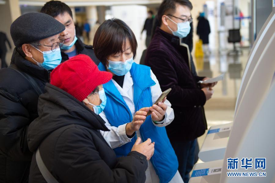 12月9日,首都医科大学附属北京天坛医院的工作人员帮助老年人使用手机缴费。新华社记者 陈钟昊 摄