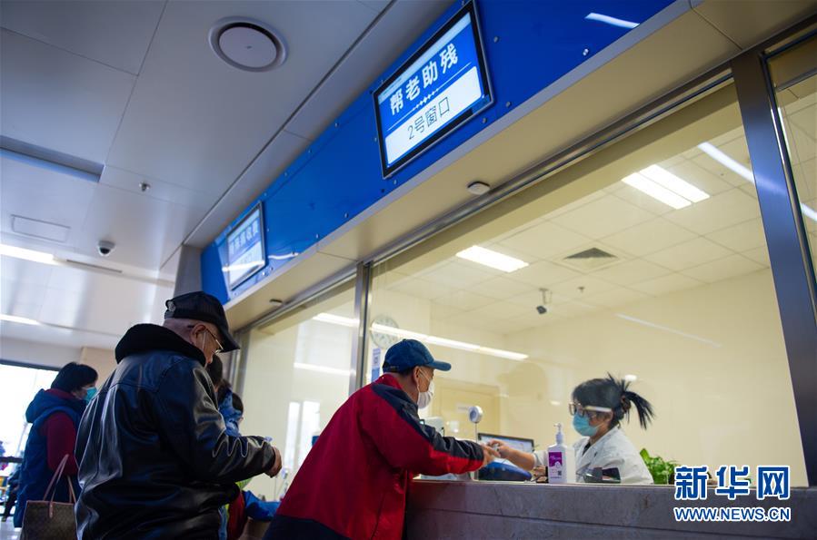 12月9日,在首都医科大学附属北京天坛医院“帮老助残窗口”,老年人在办理人工预约、缴费等业务。 新华社记者 陈钟昊 摄