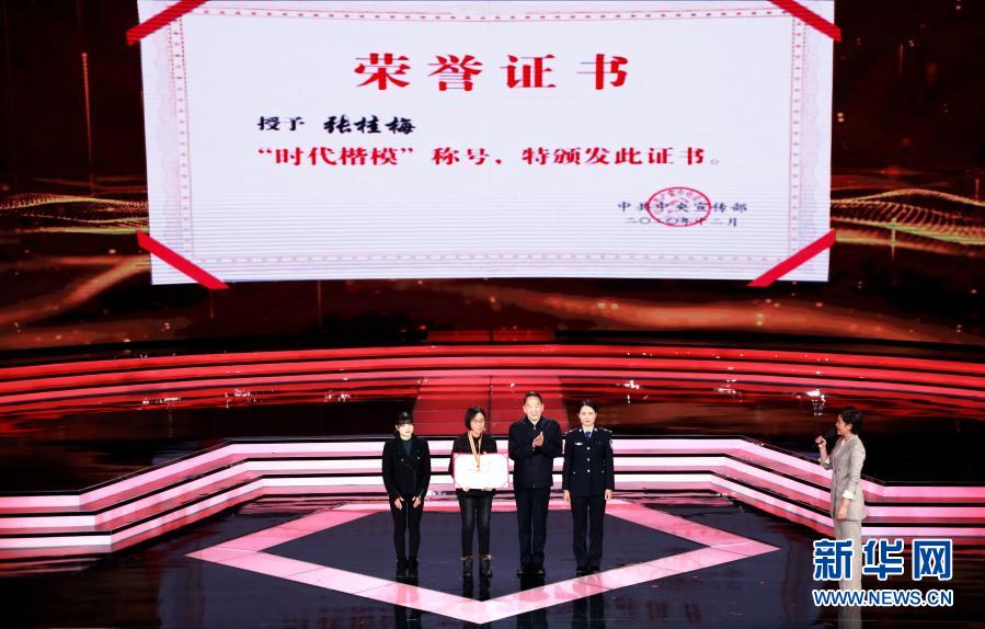 张桂梅(左二)在“时代楷模”发布仪式上(12月7日摄)。新华社记者 潘旭 摄