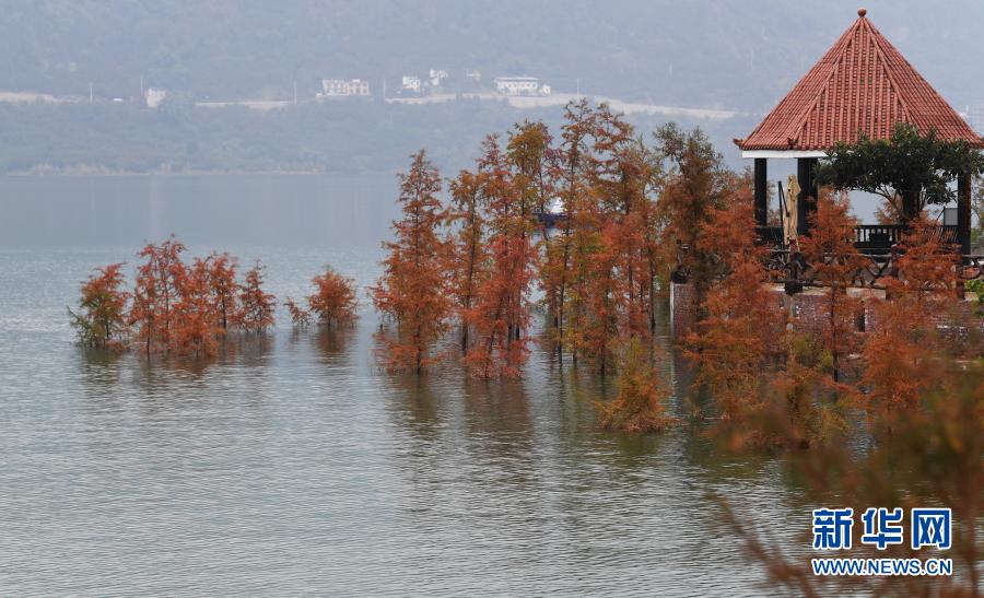 初冬时节,位于重庆市万州区大周镇的长江边,中山杉逐渐泛红,宛如“水中彩林”,成为一道亮丽的风景线。