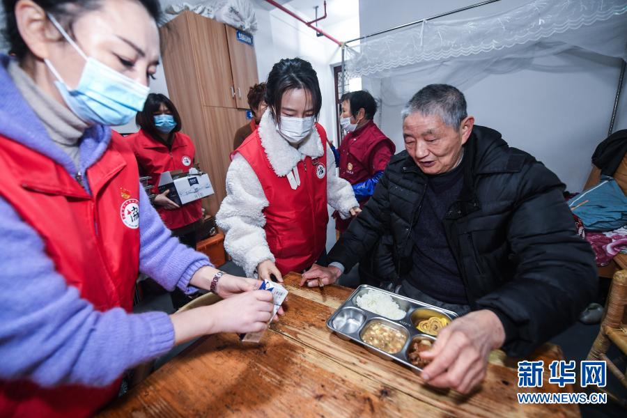 12月11日,志愿者在诸暨市枫桥镇敬老院为行动不便的老人送餐。