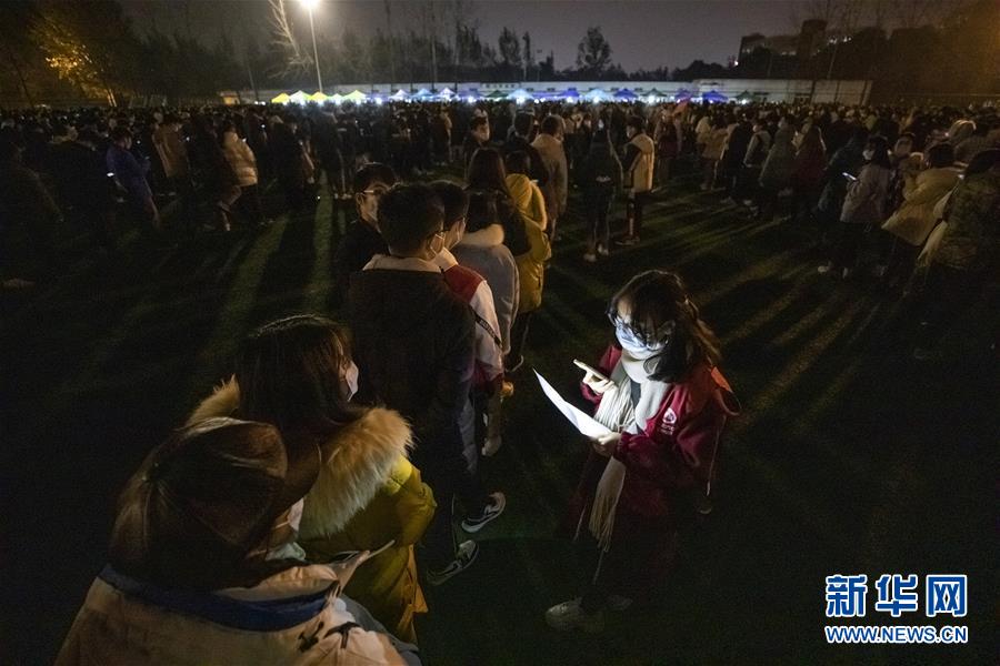 12月11日晚,在位于四川成都市郫都区的西华大学本部,一名学生志愿者在核对准备进行核酸检测的学生名单。 当日,成都市郫都区新型冠状病毒肺炎疫情防控指挥部发布通告,从2020年12月11日18点00分开始,全面开展郫都区全员新冠肺炎疫情核酸检测,确保不漏一人。检测费用由区政府承担。 新华社记者 沈伯韩 摄