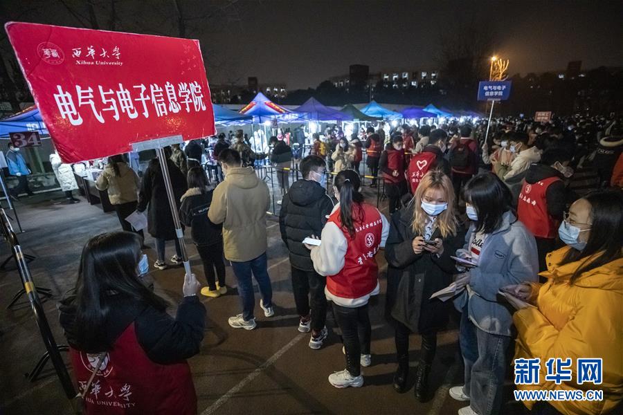 12月11日晚,在位于四川成都市郫都区的西华大学本部,学生在操场上排队准备进行核酸检测。 当日,成都市郫都区新型冠状病毒肺炎疫情防控指挥部发布通告,从2020年12月11日18点00分开始,全面开展郫都区全员新冠肺炎疫情核酸检测,确保不漏一人。检测费用由区政府承担。 新华社记者 沈伯韩 摄