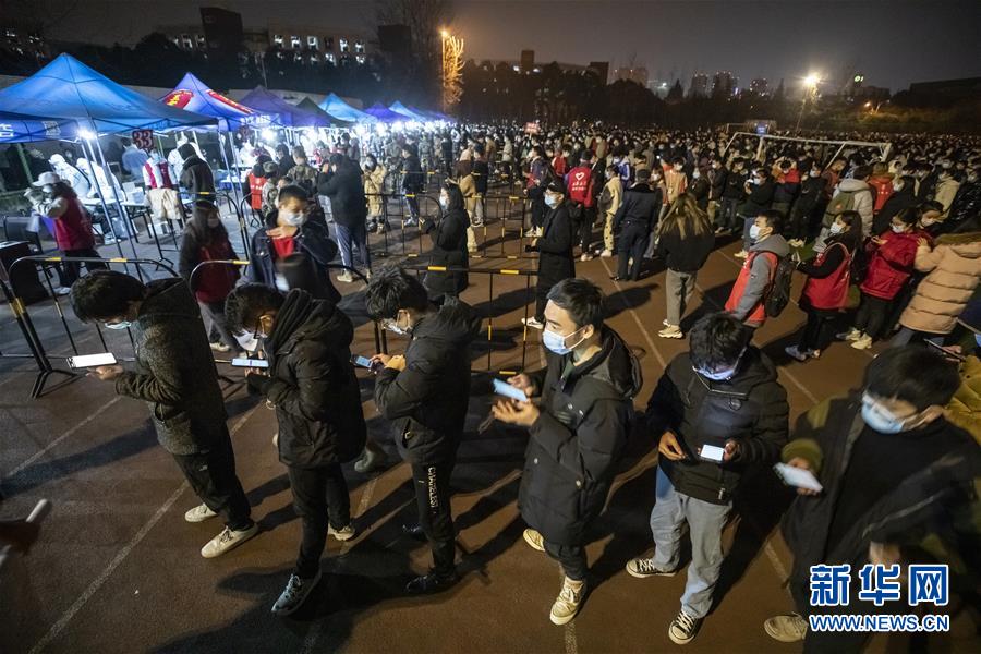 12月11日晚,在位于四川成都市郫都区的西华大学本部,学生在操场上排队准备进行核酸检测。 当日,成都市郫都区新型冠状病毒肺炎疫情防控指挥部发布通告,从2020年12月11日18点00分开始,全面开展郫都区全员新冠肺炎疫情核酸检测,确保不漏一人。检测费用由区政府承担。 新华社记者 沈伯韩 摄