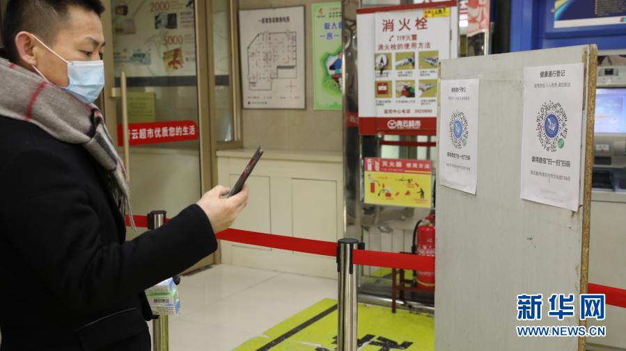 绥芬河市民进入公共场所时用手机扫“龙江健康码”二维码(12月11日摄)。