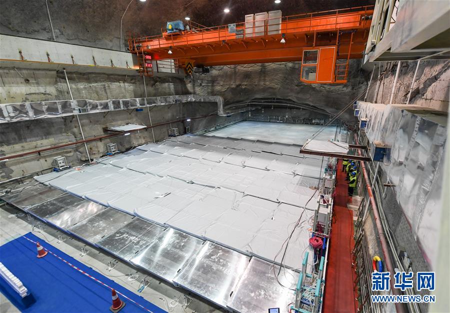 这是12月12日在深圳大亚湾核电基地拍摄的盖着外罩、仍在运行中的中微子实验装置。新华社记者 毛思倩 摄