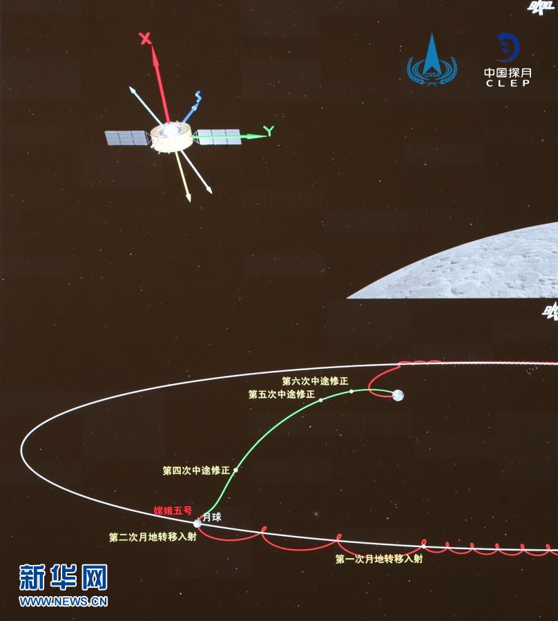 12月13日9时51分,嫦娥五号轨道器和返回器组合体实施第二次月地转移入射,在距月面230公里处成功实施四台150牛发动机点火,约22分钟后,发动机正常关机。根据实时遥测数据监视判断,轨道器和返回器组合体成功进入月地转移轨道。