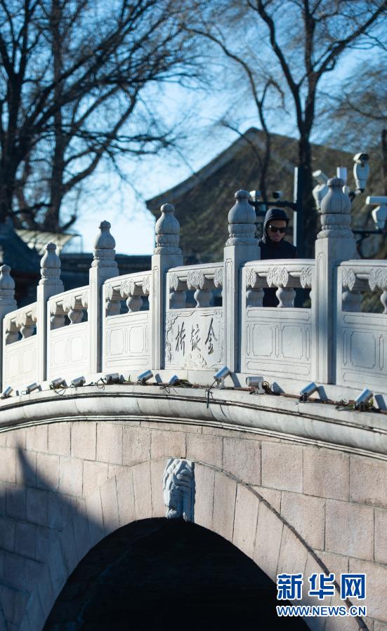 12月13日,行人走在什刹海景区内的金锭桥上。
