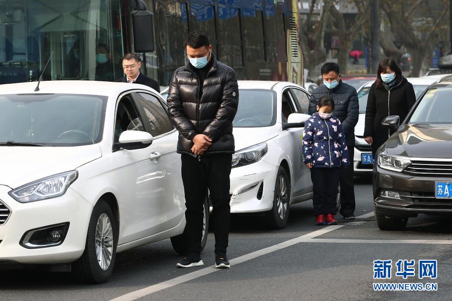 12月13日,市民在南京新街口默哀,缅怀南京大屠杀遇难同胞。