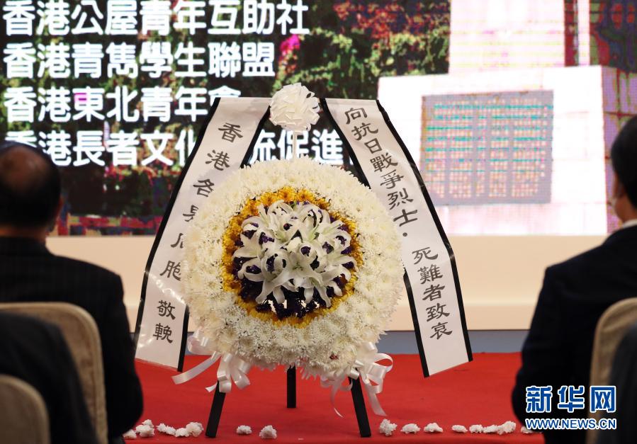 12月13日在香港亚洲电视台演讲厅拍摄的花篮。新华社记者 李钢 摄