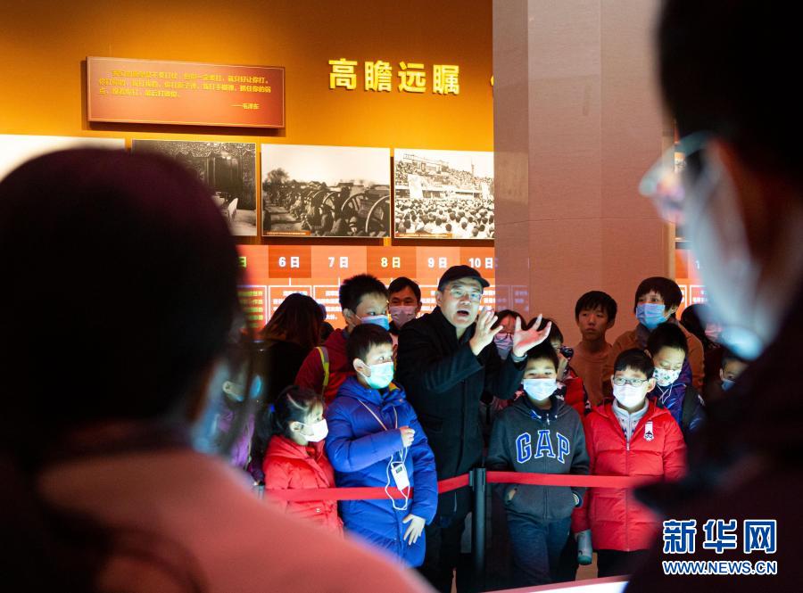 12月13日,志愿者在纪念中国人民志愿军抗美援朝出国作战70周年主题展览上为观众讲解。