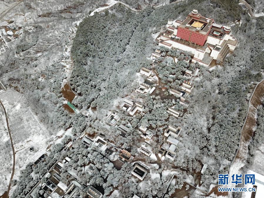 11月19日拍摄的河北承德普陀宗乘之庙雪景(无人机照片)。