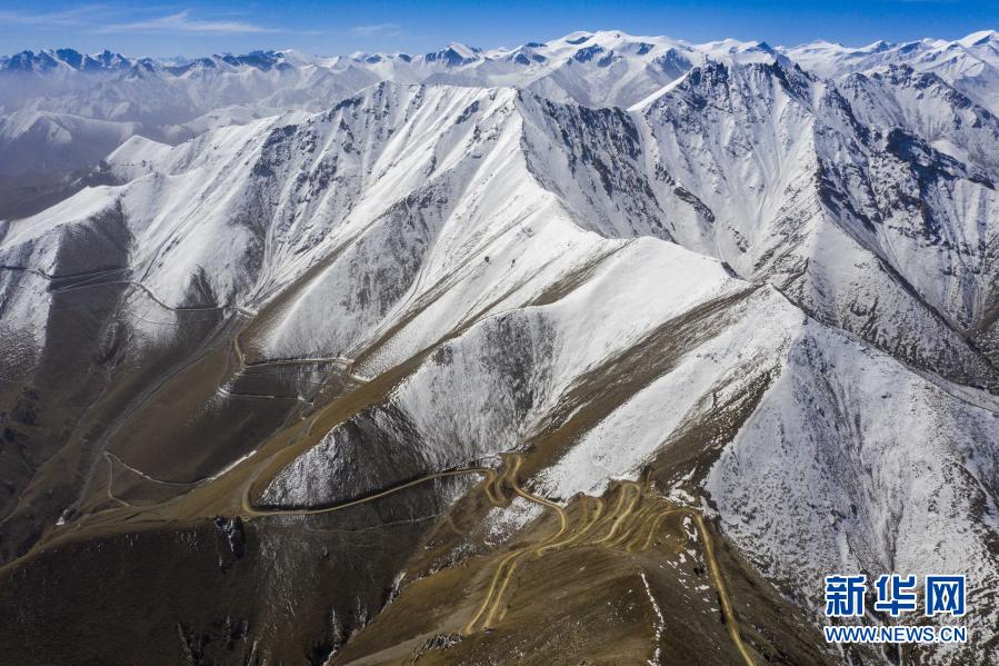 通往新疆喀什地区叶城县西合休乡亚尔阿格孜村的道路蜿蜒在崇山峻岭间(5月1日摄,无人机照片)。