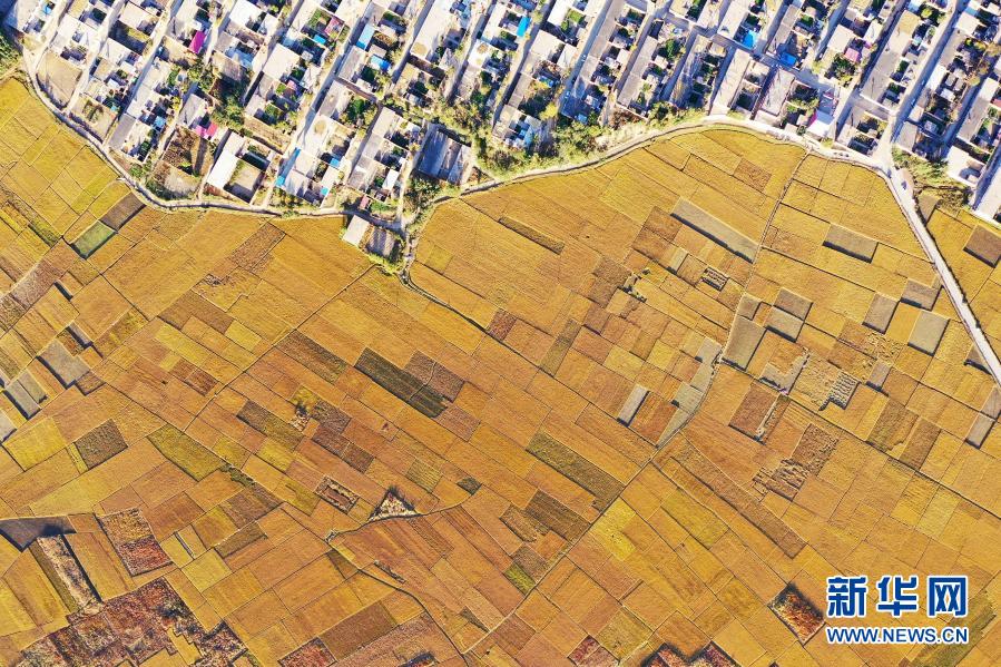 这是在河北省滦州市古城街道蒋庄村拍摄的稻田(10月18日摄,无人机照片)。