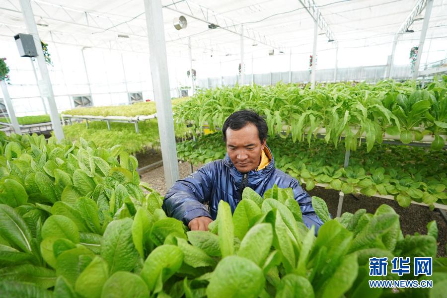 在西藏阿里地区噶尔县生态农业产业园,噶尔县左左乡上左左村村民宿加在查看蔬菜生长情况(7月25日摄)。2017年,宿加来到噶尔县生态农业产业园打工,学习蔬菜种植技术。如今,他已成为噶尔县生态农业产业园的一把好手,每个月有6000元的收入。