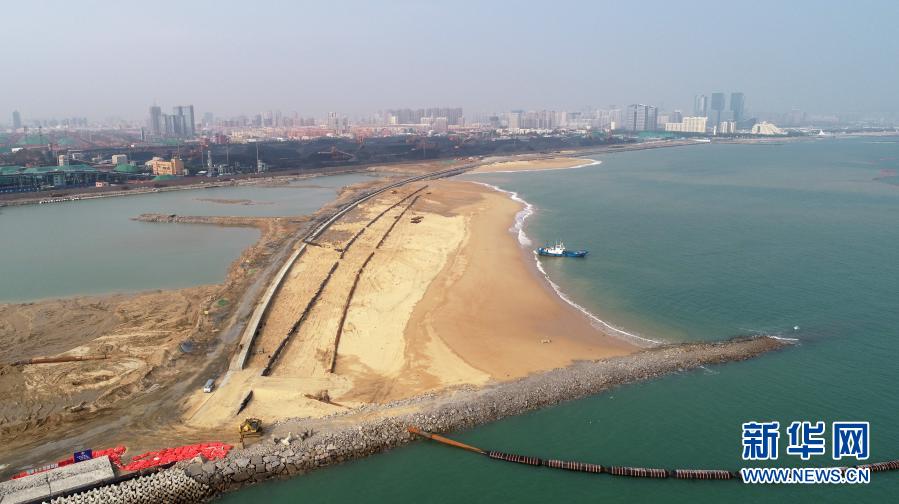 山东省日照市退港还海项目部分区域正在施工中(2018年11月12日摄,无人机照片)。新华社发