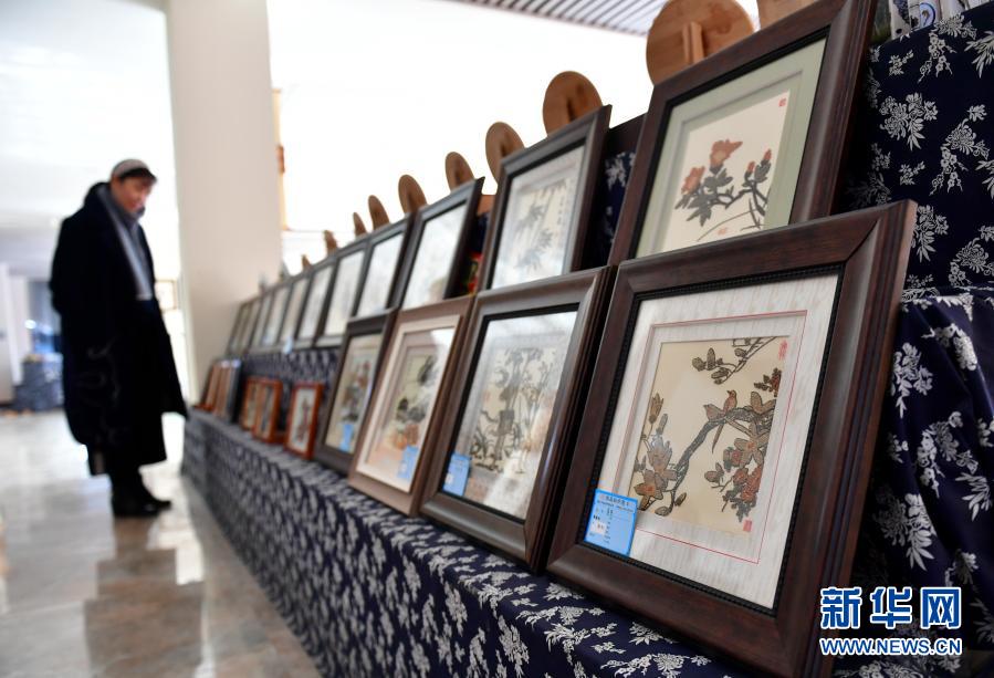12月14日,游客在馆陶县粮画小镇参观粮食画。