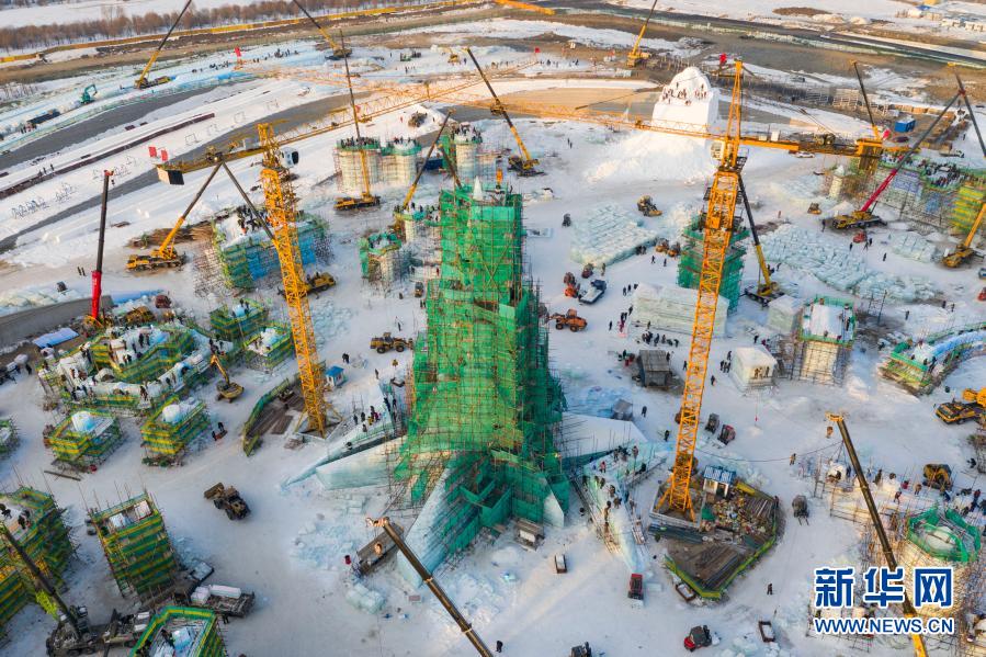 当日,第二十二届哈尔滨冰雪大世界主塔“冰城之心”完成封顶。“冰城之心”高40米,是冰雪大世界园区内最高、体量最大的冰建景观。