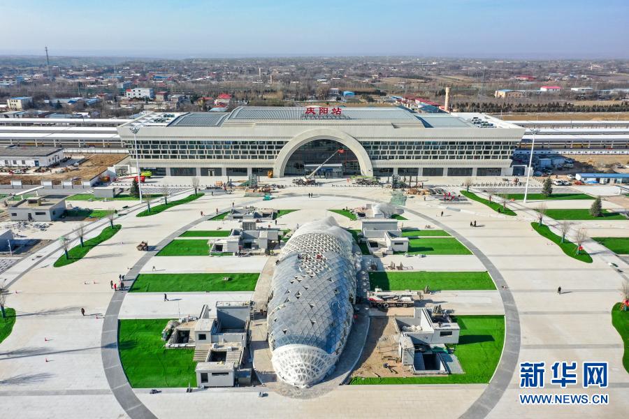 这是12月14日拍摄的银西高铁庆阳站(无人机照片)。