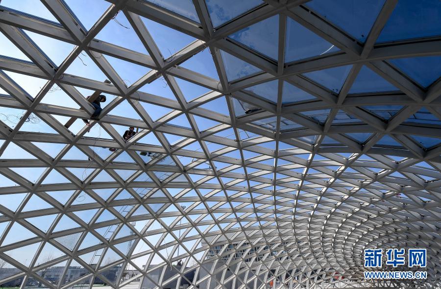 12月14日,工人在银西高铁庆阳站进行施工作业。