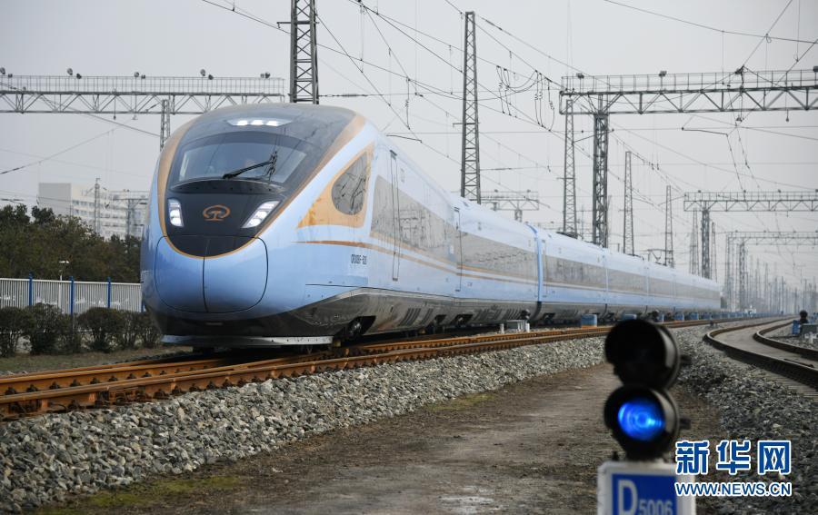 12月15日,CR300BF型“复兴号”动车组抵达中国铁路西安局集团有限公司西安动车段。当日,CR300BF型“复兴号”动车组抵达中国铁路西安局集团有限公司西安动车段,担负即将开通的银西高铁旅客运输任务。这是该型号动车组在我国的首次上线,将进一步丰富和完善“复兴号”动车组谱系。CR300BF型“复兴号”动车组,是中国标准动车组系列化产品之一,设计最高运营速度250km每小时。银西高铁开通后,将有17列CR300BF型“复兴号”动车组配属西安铁路局投入运营。新华社记者 李一博 摄