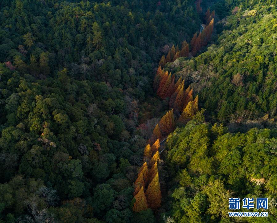 这是11月19日拍摄的福建省三明市将乐县国家级自然保护区水杉大道(无人机照片)。