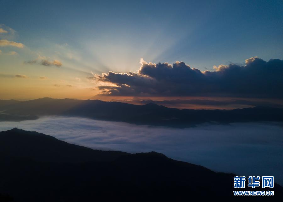 这是11月20日拍摄的福建省三明市将乐县国家级自然保护区云海日出(无人机照片)。