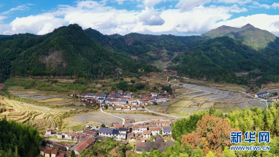 这是11月19日拍摄的大山之中的岭下村(无人机照片)。